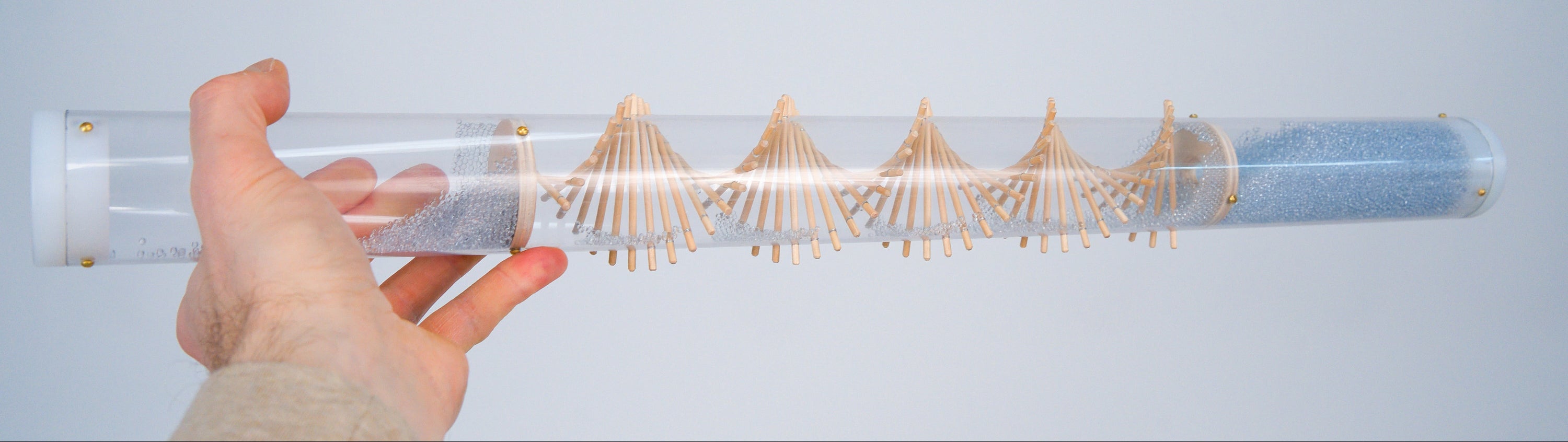 Flip a Spiral Sounds Rainstick and "ssssssshhhhhhh" let it do the rest. Relax while soothing rain sound washes over you. Close your eyes, or watch the tiny particles dance along the spiral and collect down below. We call our rainsticks lazy instruments because playing them requires no musical skill. All you have to do is - Flip. Rest. Reset.